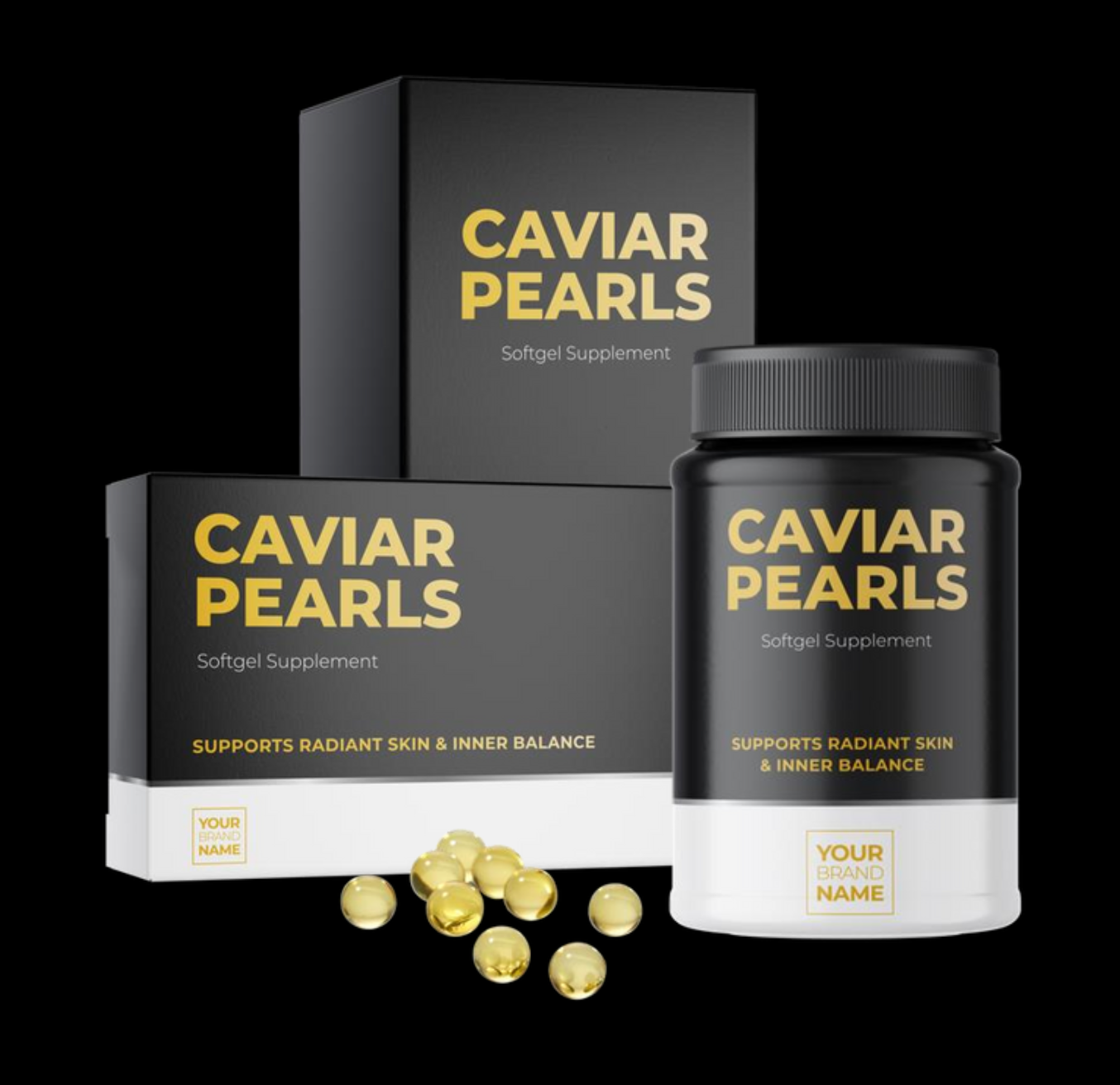 Caviar Pearls är ett högkvalitativt kosttillskott baserat på ren caviarolja, naturligt rik på omega-3, -6 och -9-fettsyror. Den näringsrika oljan bidrar till att bevara hudens fuktbalans, stödja dess naturliga elasticitet och ge en mjukare, mer strålande känsla.